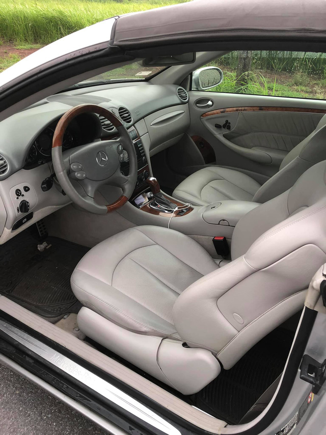 Khoang cabin của chiếc Mercedes-Benz CLK 320 sử dụng cùng tông màu với phần ngoại thất, tạo cảm giác đồng nhất từ trong ra ngoài. Khá bất ngờ khi hàng ghế da thể thao của xe vẫn cho cái nhìn chỉnh chu và chỉ bị xỉn màu nhẹ.