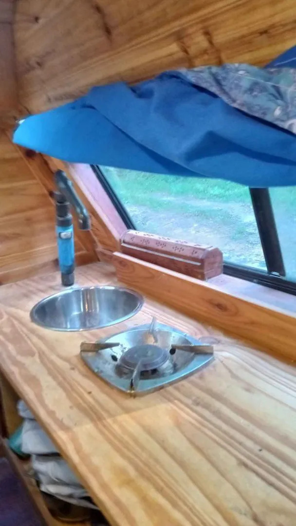 Bước vào bên trong, bạn sẽ ngạc nhiên trước sự ấm cúng và tiện nghi của không gian sống. Chiếc giường nhỏ gọn được đặt ngay ngắn, đủ cho một giấc ngủ ngon sau một ngày dài khám phá. Bên cạnh đó, một chiếc bàn nhỏ cùng bồn rửa và bếp nấu đơn giản giúp bạn có thể chuẩn bị những bữa ăn nhẹ. Hệ thống điện năng lượng mặt trời 110W được lắp đặt trên nóc xe cung cấp đủ năng lượng cho các thiết bị điện tử như đèn, quạt và thậm chí là một chiếc tivi nhỏ.