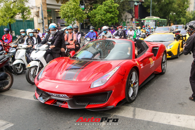 Nhân dịp sự kiện 22 năm thành lập công ty, đích thân vị doanh nhân Hoàng Kim Khánh cầm lái 488 Pista Spider mới tậu, dẫn đầu dàn siêu xe diễu hành đến đường Huỳnh Văn Bánh, Q. Phú Nhuận, TP.HCM. Đây là lần đầu tiên chiếc 488 phiên bản hiệu suất cao lăn bánh trên đường phố Việt Nam.
