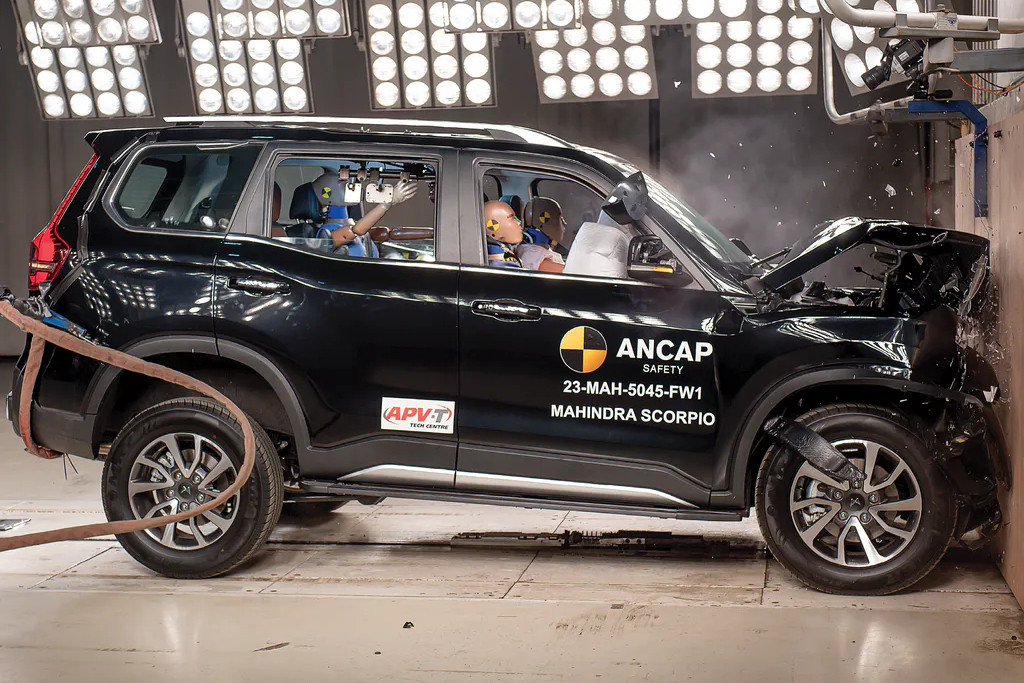 Các chuyên gia cũng phát hiện chiếc xe Mahindra Scorpio thiếu các điểm cố định dây an toàn cho trẻ em ở hàng ghế thứ ba, không có túi khí trung tâm ở hàng ghế trước và trong một thử nghiệm va chạm bên hông, dây an toàn của người lái thậm chí còn bị bung ra. Đặc biệt, ở mẫu Mahindra Scorpio phiên bản 7 chỗ bán tại New Zealand, ghế giữa của hàng ghế thứ 2 chỉ có dây đai an toàn thắt ngang qua bụng (loại 2 điểm) thay vì phải có dây đai an toàn 3 điểm.