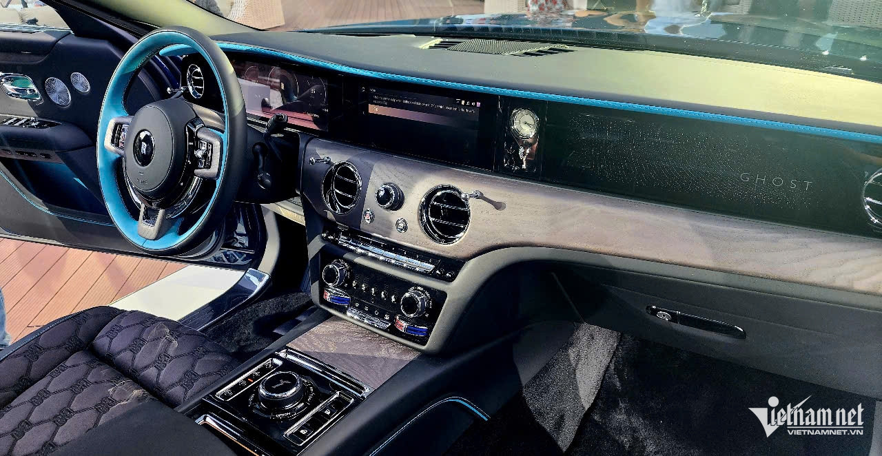 Chiếc Ghost Series II bản thường trưng bày tại TPHCM vào ngày 17/4 có màu ngoại thất xanh Mustique Blue - một trong hơn 44.000 màu của Rolls-Royce. Màu sơn này kết hợp các mảnh thủy tinh và mica, tạo hiệu ứng lấp lánh dưới ánh nắng, từng xuất hiện trên Phantom II Continental năm 1929.