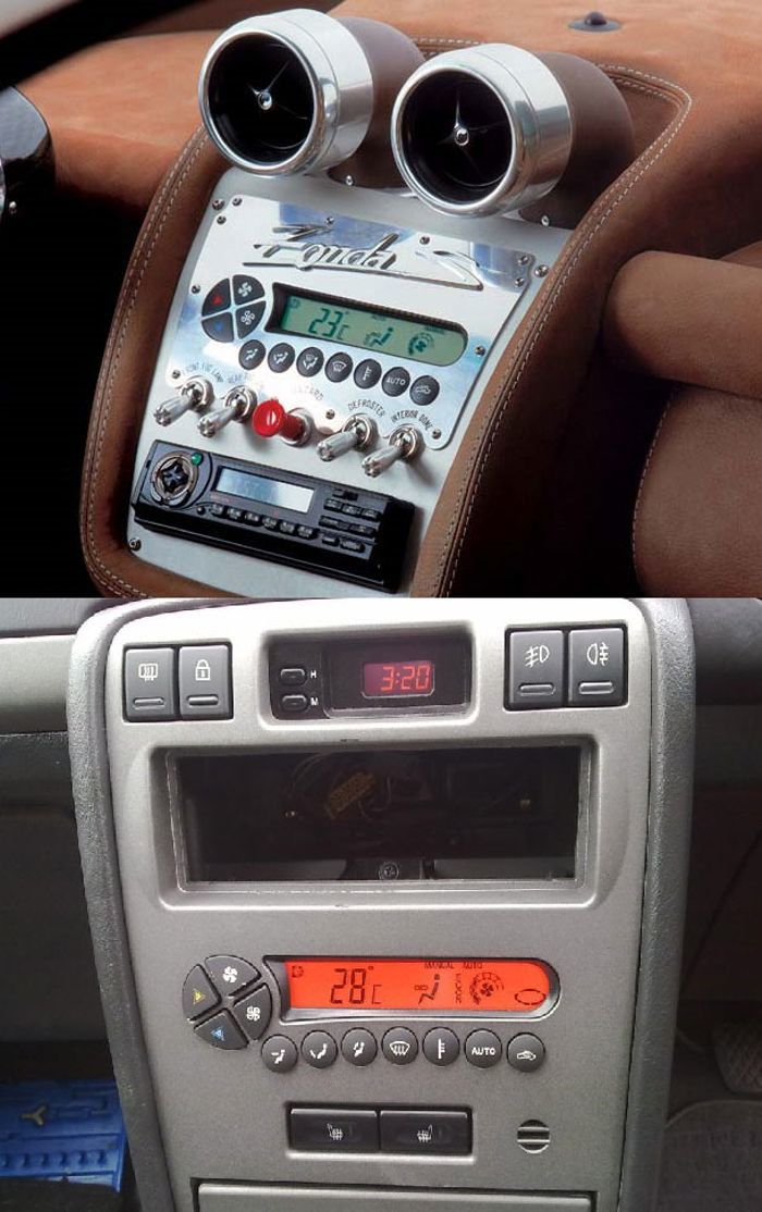 Khi ra mắt vào năm 1999, Pagani Zonda đã gây được tiếng vang ngay lập tức với động cơ mạnh mẽ và ngoại hình ấn tượng. Động cơ V12 dung tích 7,3 lít và tốc độ tối đa 200 km/h đã biến nó trở thành một siêu xe tuyệt vời. Mặt khác, Rover 45 thì không may mắn như vậy. Đây là chếc xe cổ đại diện cho phong cách nước Anh thời trung đại.Dù có giá bán chênh nhau đến 10 lần nhưng cả 2 chiếc xe này lại được trang bị cùng một loại hệ thống điều hòa không khí (HVAC).