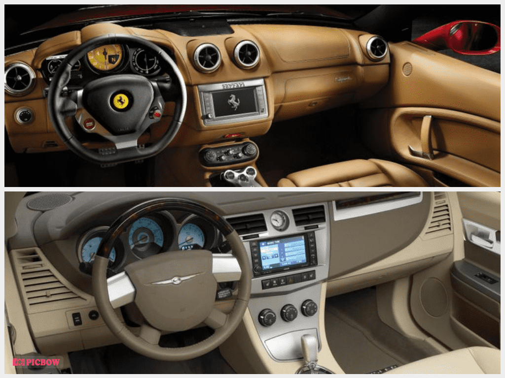 Trước khi đứng ra là một đơn vị độc lập vào năm 2016, Ferrari đã từng nằm dưới trướng FCA. Do đó, việc có cùng chung công ty mẹ với hãng Chrysler là nguyên do cho sự giống nhau về trang bị hệ thống thông tin giải trí giữa Ferrari California và một trong những chiếc xe Mỹ tệ nhất từng được sản xuất, Sebring.