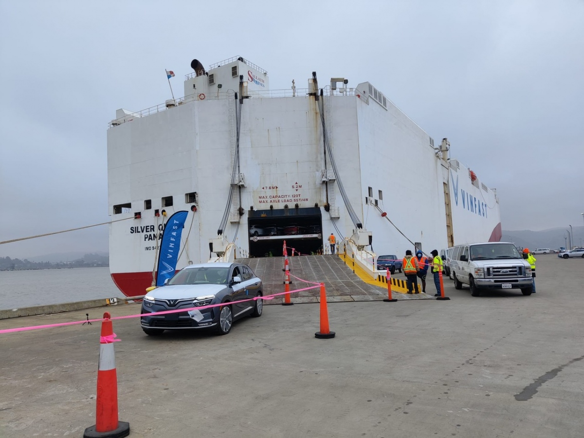 Trước đó, chiều 17/12/2022 (giờ PST, tức sáng sớm ngày 18/12/2022 giờ Việt Nam), con tàu gắn logo VinFast chở 999 xe VF 8 đã di chuyển đến khu vực Vịnh San Francisco (Mỹ), đi qua cây cầu Cổng Vàng biểu tượng và chuẩn bị cập bến California, sau hơn 20 ngày xuất phát từ cảng Hải Phòng, Việt Nam. Sau khi hoàn tất các thủ tục cần thiết, dự kiến những chiếc xe VinFast VF 8 đầu tiên sẽ sẵn sàng bàn giao cho các khách hàng Mỹ ngay trong tháng 12.