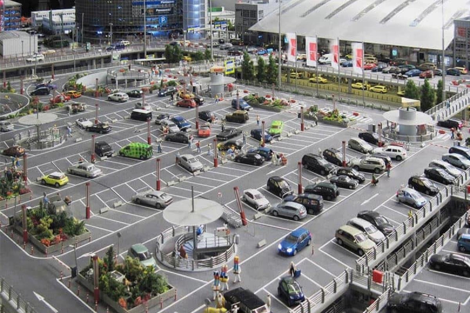 Trong khu đỗ xe có sẵn các vạch trắng phân chia rõ khu vực đỗ xe dành cho từng chiếc ô tô. Mỗi chuồng đã được tính toán sao cho có kích thước rộng hơn chiếc ô tô để người lái có thể mở và đóng cửa xe, lên, xuống xe dễ dàng.