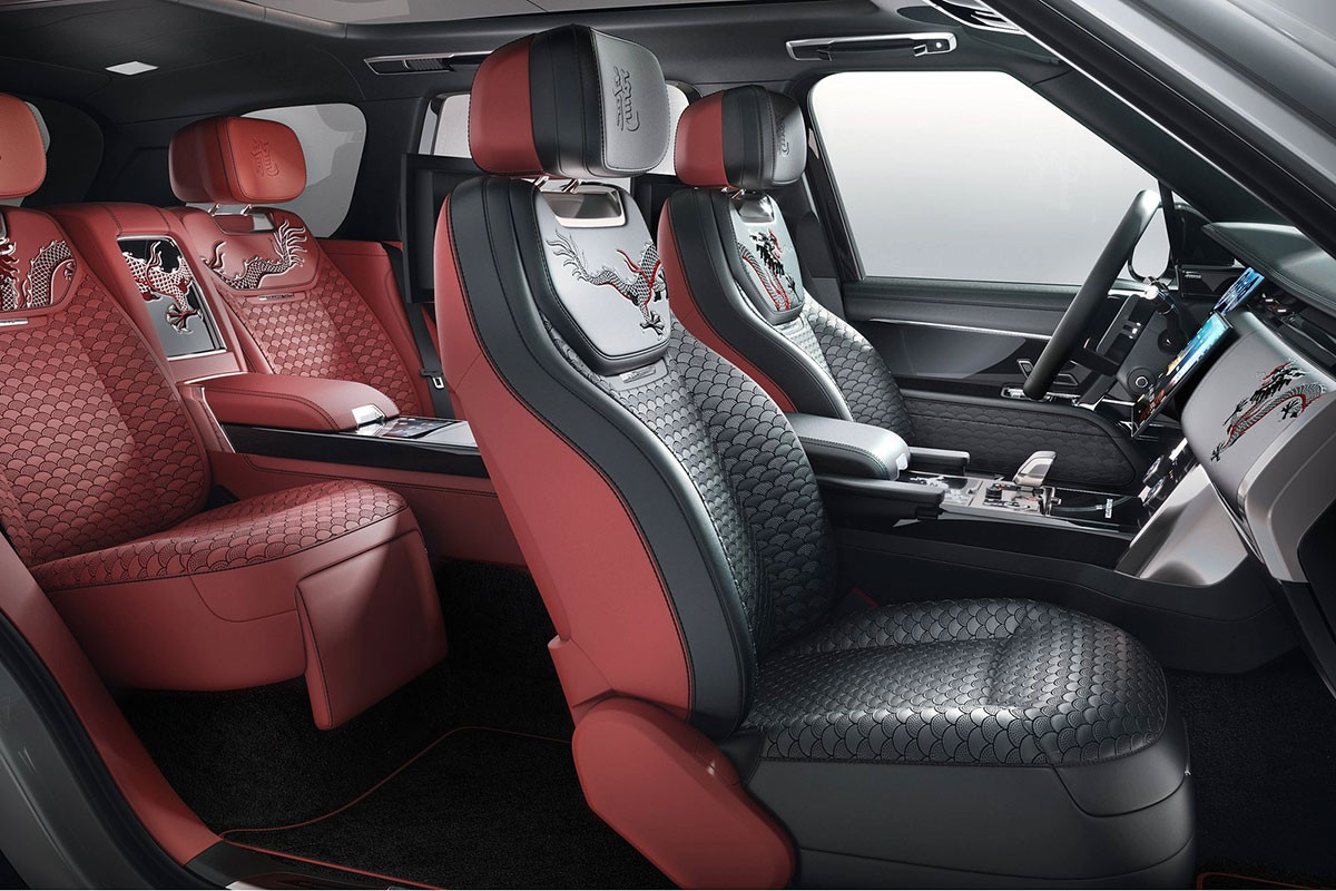 Cả 4 ghế ngồi còn đều được thêu hình vảy rồng, còn cần số được trang trí thêm hình móng vuốt rồng. Ngoài ra, các vị trí tựa đầu đều được dập chìm hình chữ "Long" (Rồng) bằng tiếng Trung.