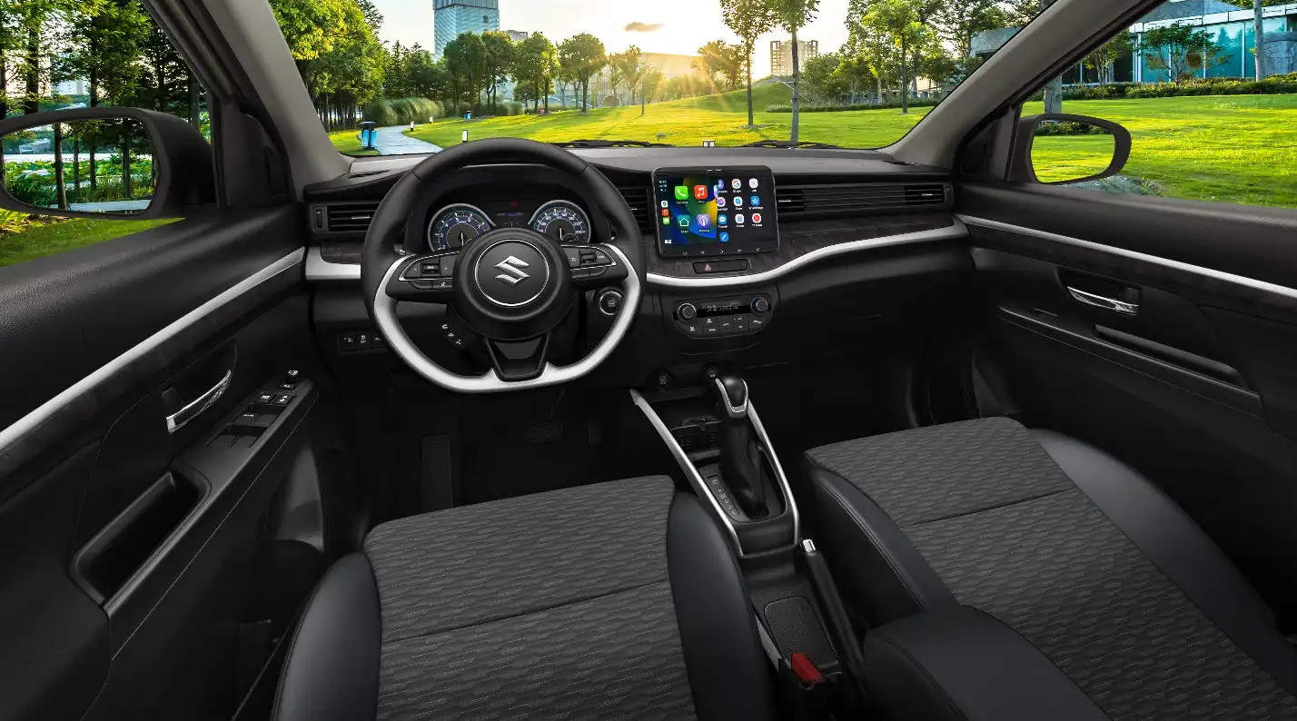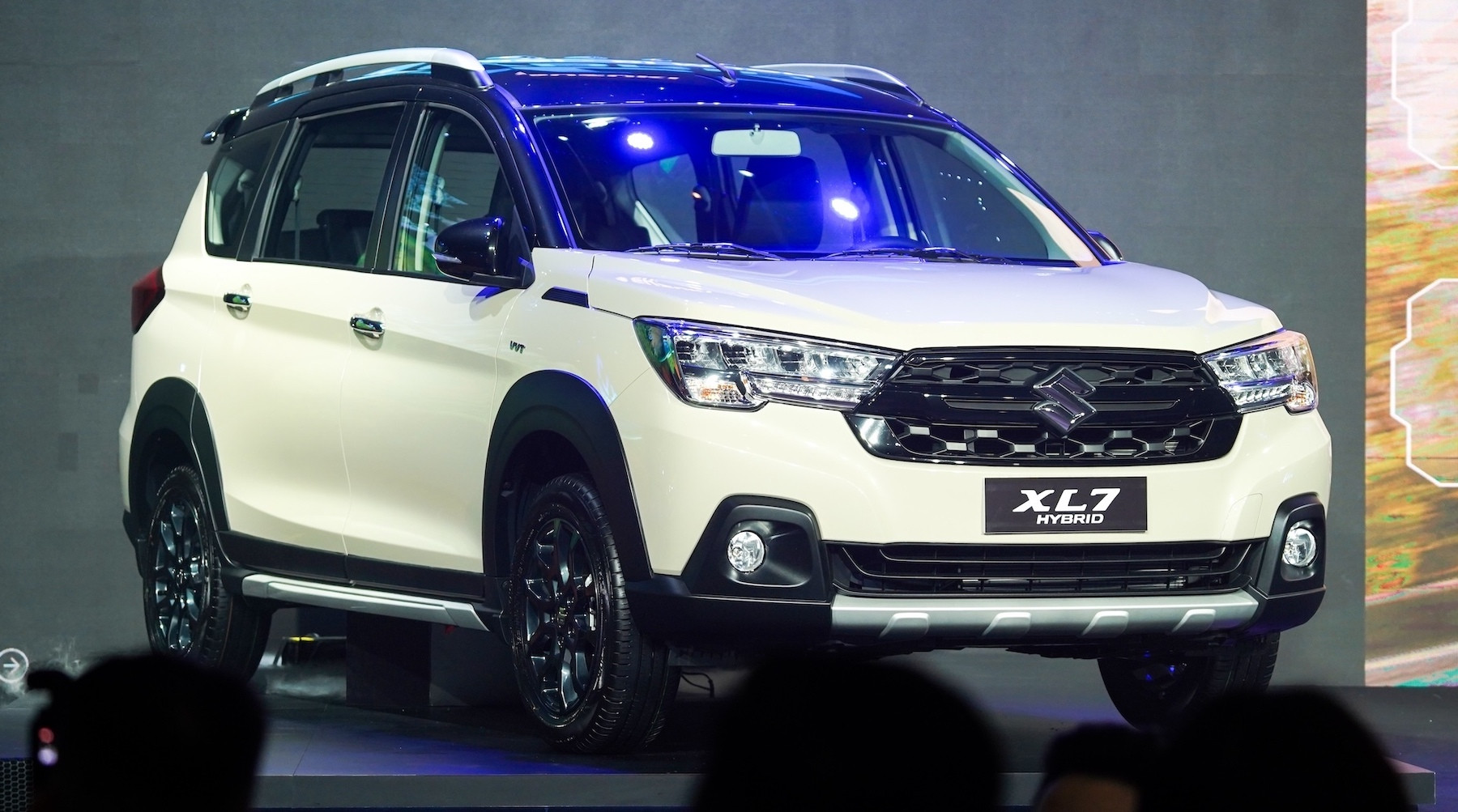 XL7 Hybrid với lựa chọn 1 tông màu giá 599,9 triệu đồng có kích thước dài 4.450 x rộng 1.775 x cao 1.710 (mm), chiều dài cơ sở 2.740mm và khoảng sáng gầm 200mm. Điểm nổi bật bên ngoài của xe là cụm đèn pha LED và đèn ban ngày, cùng đèn pha phản quang tăng cường ánh sáng. Xe dùng mâm hợp kim 16 inch, ốp cản trước sau mạ bạc và viền bảo vệ nhựa đen chống trầy xước, sẵn thanh giá nóc. Bên trong, xe có vô-lăng 3 chấu tích hợp nút điều khiển, đồng hồ thông tin nổi bật. Ghế bọc nỉ, màn hình trung tâm cảm ứng 10 inch, tương thích Apple CarPlay/Android Auto, camera lùi. Tiện ích bao gồm điều hòa tự động, kiểm soát hành trình, sạc không dây, cốp mở điện, camera 360 độ. Bản XL7 hybrid có màn hình kết nối không dây và mặt đồng hồ tinh chỉnh.