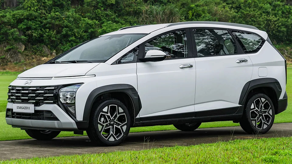 Hyundai Stargazer X bản cao cấp giá 599 triệu đồng có kích thước dài 4.495 x rộng 1.815 x cao 1.710 (mm), chiều dài cơ sở 2.780mm và khoảng sáng gầm 200mm. Ngoại hình xe nổi bật với cản trước kiểu nối liền lưới tản nhiệt tạo thành hình chữ X, đi kèm viền crom lớn, đèn pha trên là dạng full LED 4 choá tích hợp đèn sương mù được đặt thấp. Bên trong, táp-lô xe kiểu khung lớn, nhô cao, đặt màn giải trí trung tâm dạng cảm ứng 10.25 inch, hỗ trợ kết nối Apple CarPlay/Android Auto và màn hình thông số sau vô-lăng. Các ghế ngồi bọc da, tiện nghi có điều hòa tự động, sẵn cửa gió hàng ghế sau, âm thanh 8 loa,...