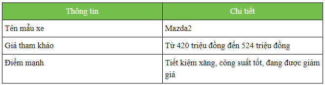 Theo một số nguồn tin, Mazda2 đang được ưu đãi rất tốt. Giá khởi điểm tham khảo của Mazda2 hiện chỉ từ 420 triệu đồng, biến đây là một trong những lựa chọn rất đáng cân nhắc.
