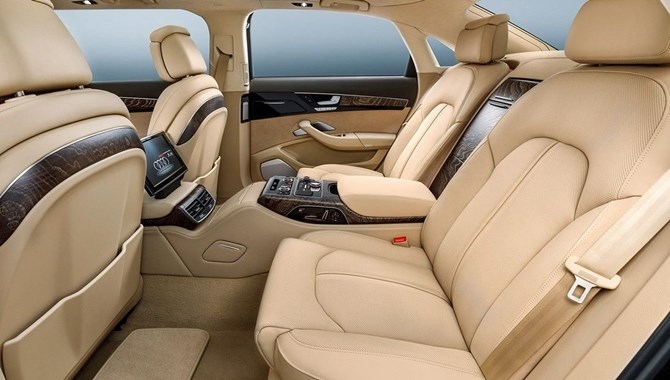 Audi A8 mang đến cho hành khách ngồi sau rất nhiều trang bị cao cấp. Đầu tiên là Audi Connect, hành khách có thể kết nối Wi-Fi với xe. Ghế có khả năng điều chỉnh 22 hướng và 5 chế độ massage. Phần để chân của hành khách phía sau cũng có thể điều khiển được.