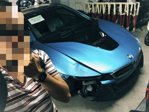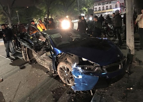 BMW i8 gặp nạn hôm 5/2/2016 gần Hồ Gươm, Hà Nội. Ảnh: Tú Lê. |