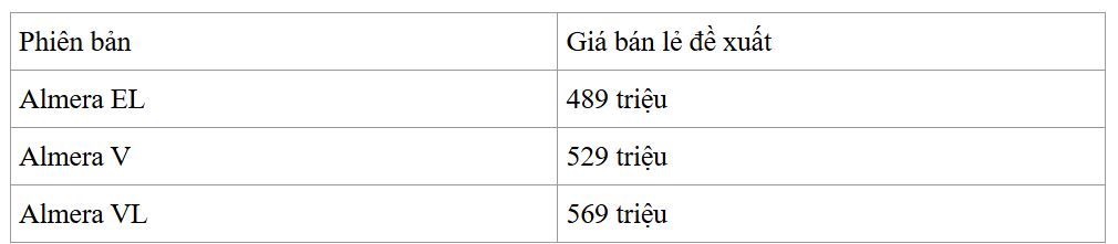 Đối thủ trong phân khúc của mẫu xe này có Toyota Vios, Hyundai Accent và Honda City. Giá Vios khởi điểm từ 458 triệu đồng. Giá Accent từ 439 triệu đồng. Hai bản Vios và Accent tiêu chuẩn dùng số sàn. City có giá từ 499 triệu đồng, cũng dùng số CVT như Almera.