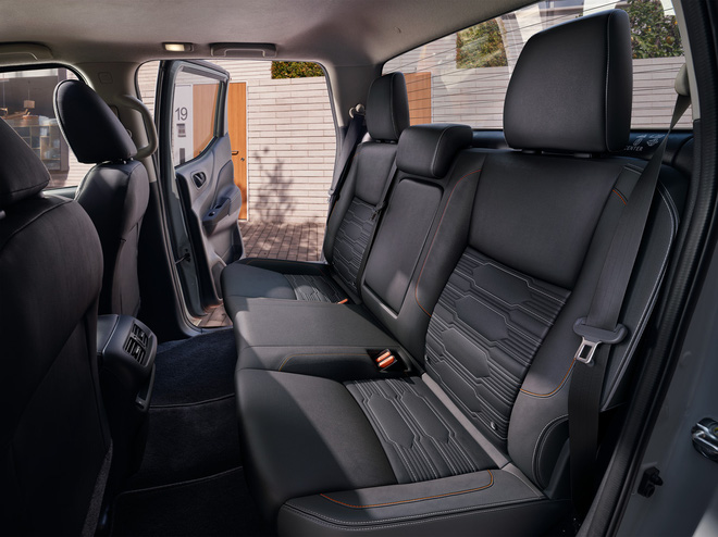 Nội thất xe có điểm nhấn là vô-lăng 3 chấu thanh mảnh hơn, thay cho loại cũ từng gây tranh cãi. Các chi tiết còn lại gần như vẫn giữ thiết kế từ bản cũ. Trên phiên bản cao nhất, Navara có ghế da, ghế lái chỉnh điện 8 hướng, kính lái lên/xuống một chạm, màn hình cảm ứng 8 inch hỗ trợ Apple CarPlay, âm thanh 6 loa, đề nổ bằng nút bấm, điều hòa tự động 2 vùng có cửa gió sau.