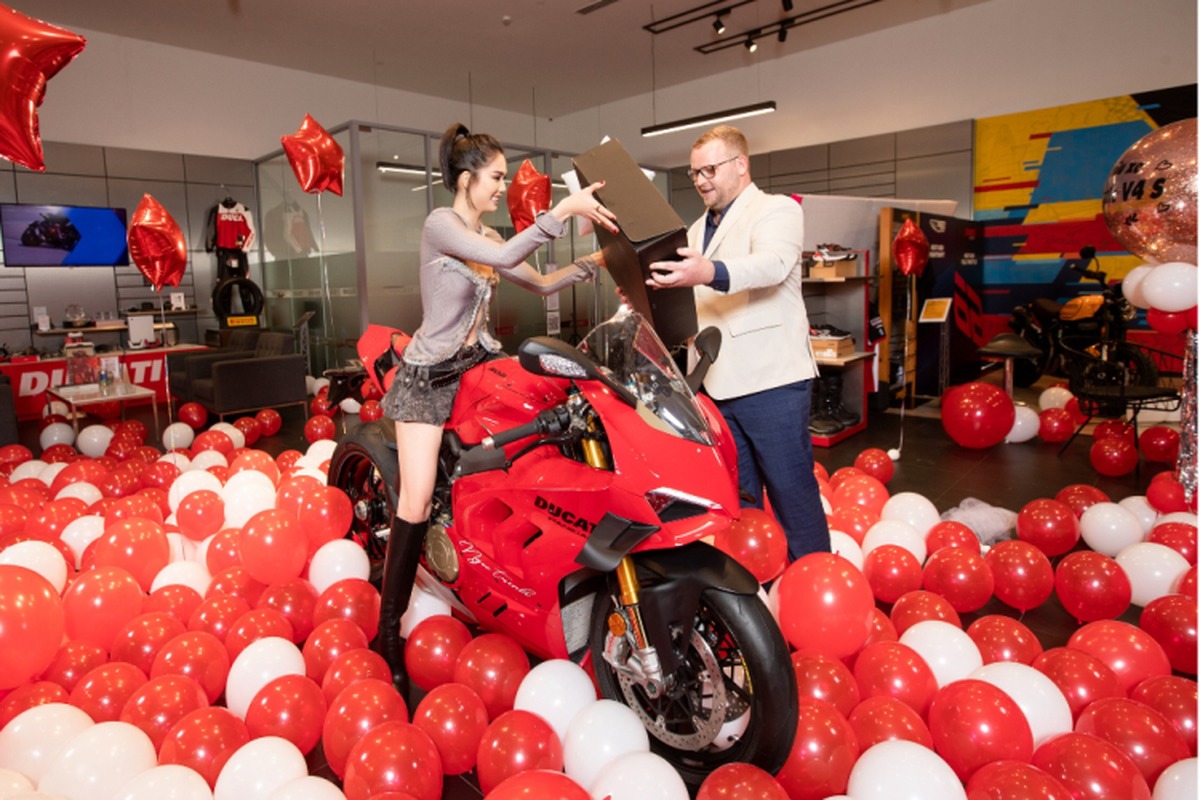 Mới đây, "nữ hoàng nội y" Ngọc Trinh bất ngờ xuất hiện tại Showroom Ducati Sài Gòn và tự tay đập thùng chiếc siêu môtô Ducati Panigale V4 S màu đỏ trị giá hơn 1 tỷ đồng.