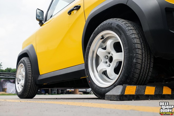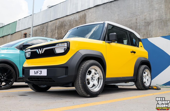 Tiêu biểu như chiếc VF 3 màu vàng do PERfamily thực hiện; chiếc xe này đang sử dụng bộ vành theo phong cách JDM, kết hợp với spacer (độn bánh, kiểu độ thường thấy trên xe SUV/bán tải giúp tăng ổn định phương ngang). Hai thay đổi này khiến bánh xe trở thành điểm nhấn chính, đồng thời khiến tổng thể xe trông khỏe hơn.