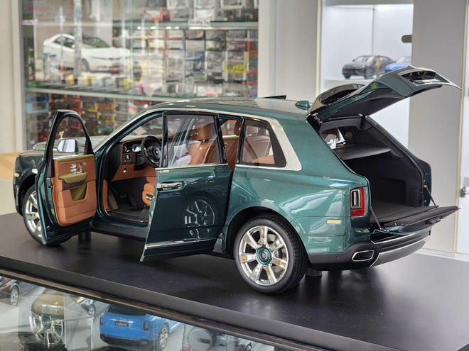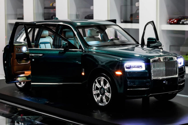 • Một chiếc mô hình Rolls-Royce Cullinan tỷ lệ 1/8 do Amalgam sản xuất đang được bán tại Việt Nam;• Xe có độ tinh xảo cao, mô phỏng nhiều chi tiết mà một chiếc xe thật có;• Giá rao bán của chiếc mô hình này ngang với một mẫu sedan hạng B.