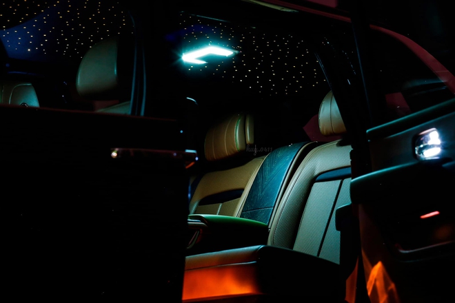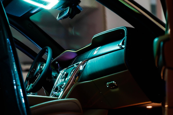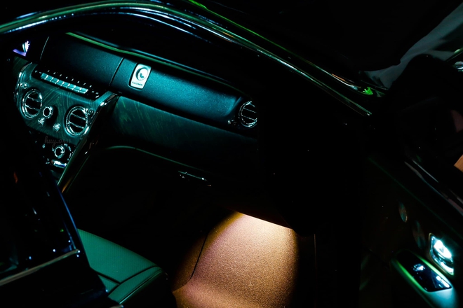 Không chỉ dừng lại ở đèn công tắc nội thất, ngay cả trần sao - tùy chọn mang tính biểu tượng của Rolls-Royce - cũng được mô phỏng trên xe mô hình. Toàn bộ các cụm đèn trang trí của xe đều có thể bật hoặc tắt bằng điều khiển từ xa.