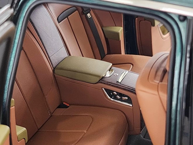 Có thể thấy, chiếc mô hình Rolls-Royce Cullinan này còn có logo Spirit of Ecstasy màu vàng ở đầu xe, phỏng theo tùy chọn biểu tượng mạ vàng trên xe thật. Bên cạnh đó, hàng ghế sau của xe cũng đang mô phỏng tùy chọn cấu hình 4 chỗ ngồi của Rolls-Royce Cullinan thực tế.