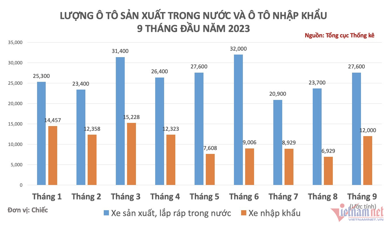 Cụ thể, trong tháng 9 vừa qua, ước tính có khoảng 39.600 chiếc ô tô mới được bổ sung cho thị trường Việt Nam, bao gồm cả xe nhập khẩu và xe sản xuất trong nước, tăng 29,3% so với tháng 8.