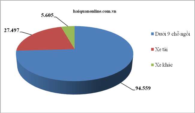 Trong đó, có tới 3.839 ô tô từ 9 chỗ ngồi trở xuống với tổng kim ngạch 69,75 triệu USD.