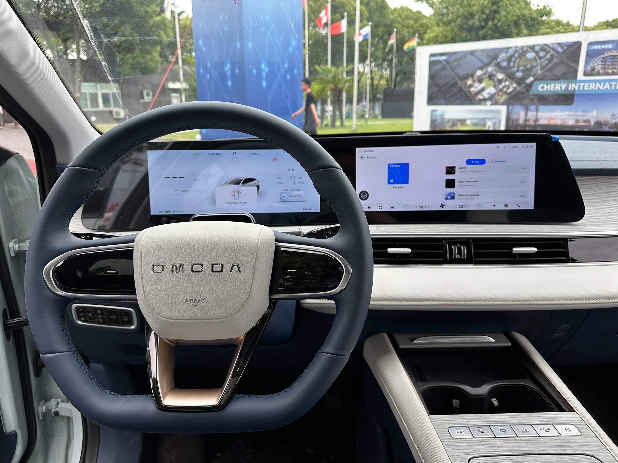 Hãng xe Trung Quốc bố trí hai màn hình kích thước 12,3 inch, độ phân giải 1920x720 để làm đồng hồ tốc độ và màn hình giải trí. Đáng chú ý, Omoda E5 được trang bị bộ vi xử lý Qualcomm 8155 cho màn hình trung tâm nhằm thực hiện các thao tác mượt mà, không có hiện tượng giật lag. Ngoài ra, xe cũng có kết nối Apple CarPlay/Android Auto tương tự bản xăng. Phía trước mặt người lái còn hệ thống HUD giúp người lái dễ dàng nắm bắt các thông số của xe.