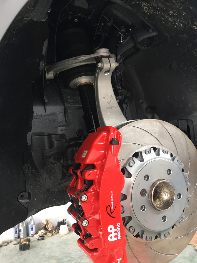"Bản thiết kế lên 3D trước cả khi khách mua xe. Khi chiếc Lux A ra khỏi showroom là về thẳng xưởng. Phong cách độ widebody nhằm mở rộng thân xe và vệt bánh để bám đường. Ngoài hệ thống treo khí nén giúp nâng hạ xe tùy thích bằng điều khiển, xe được nâng cấp sang loại phanh hiệu năng cao của AP Racing, ống xả thể thao", anh Sơn chia sẻ.