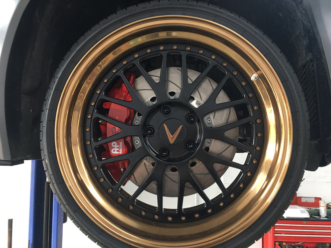 Trong đó, bộ mâm 2 mảnh kích thước 20 inch, sơn phối 2 tông màu đen vàng được xưởng đặt hàng theo thông số riêng để lắp cho xe. Anh Sơn cho biết, Lux A2.0 sử dụng nền tảng của BMW 5-series F10 nên hệ thống treo, phanh, phụ kiện khác cũng không khó để đặt mua.