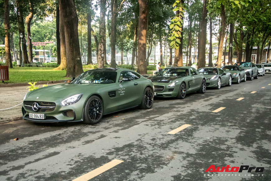 7 chiếc siêu xe và xe sang với tông màu xanh quân đội của ông Đặng Lê Nguyên Vũ đã xuất hiện trên phố vào sáng sớm.
