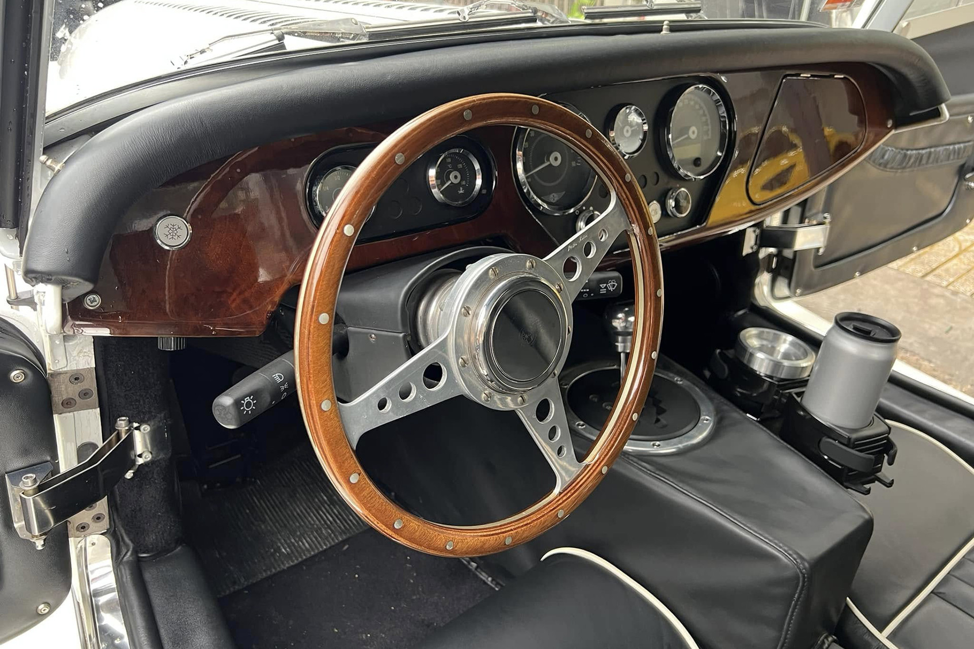 Ngoại thất xe sơn màu trắng, đi kèm bộ vành nan hoa mạ crôm sáng bóng. Tùy chọn này khác với chiếc thứ hai tại Việt Nam, sử dụng bộ la-zăng tương tự nhưng sơn màu đen. Chiếc xe thể thao mang thiết kế cổ điển này có thể đóng mở phần mui mềm tạo thành xe mui trần để dạo phố.