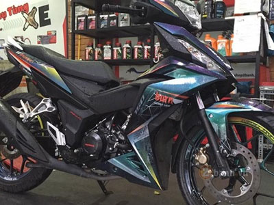 Mẫu xe côn tay Honda Winner 150 của một biker Sài Gòn được sơn tem đấu có thể chuyển màu theo từng góc nhìn.
