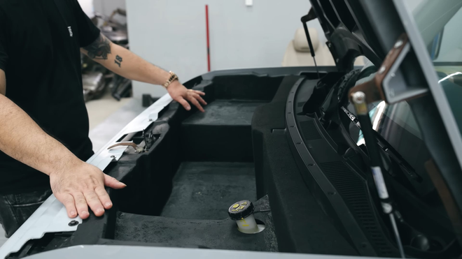 Dù capo xe bằng nhựa nhưng phần khung xương đảm bảo cho việc làm ty và ổ khóa dễ dàng, nếu không sẽ phải thay vật liệu khác. Chi tiết này đã được showroom Xuân Hoàn làm thành bản thương mại, giúp những ai mong muốn thay đổi. Cùng với đó là khoang chứa đồ làm đơn giản, được đổ composite sau đó bọc nỉ và có thể chịu nhiệt.