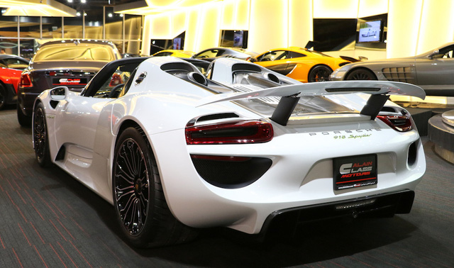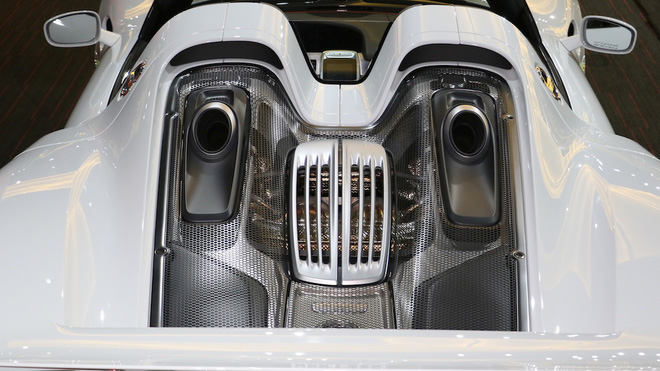Porsche 918 Spyder là siêu xe đầu tiên của thương hiệu Đức được trang bị cấu hình hybrid (xăng lai điện). Mẫu xe này được sản xuất với số lượng là 918 chiếc. Về mặt thiết kế, 918 Spyder có phần mui có thể tháo rời và cất ở khoang hành lý phía đầu xe. Hệ thống ống xả của xe không đặt ở phía đuôi hay bên hông như nhiều mẫu xe khác mà được đặt ở ngay phía sau đầu của người lái và hành khách. Đối thủ của "ngựa Đức" là Ferrari LaFerrari và McLaren P1.
