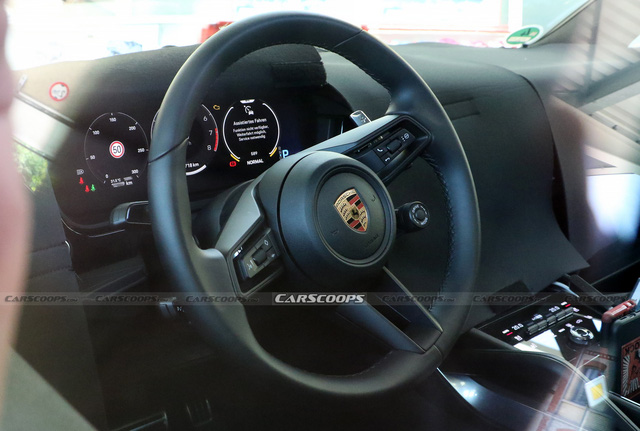 Một chi tiết lạ trong ảnh chụp nội thất Porsche Cayenne facelift nằm ở rìa phải bên dưới – vị trí 2 chiếc điện thoại được dựng thẳng thế chỗ cần số thường thấy. Liệu đây là thay đổi thực sự trên chiếc SUV Đức hay chỉ là do góc chụp mà thôi?
