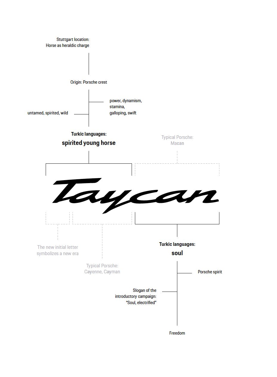 “Can” cũng có nguồn gốc từ tiếng Thổ, có nghĩa là linh hồn. Theo đó, ở cấp độ cơ bản, linh hồn của chú ngựa trẻ trung, sung mãn sẽ song hành cùng với tinh thần của Porsche. Điều này cũng phù hợp với chiến dịch quảng cáo mới dành cho Porsche Taycan.