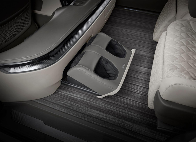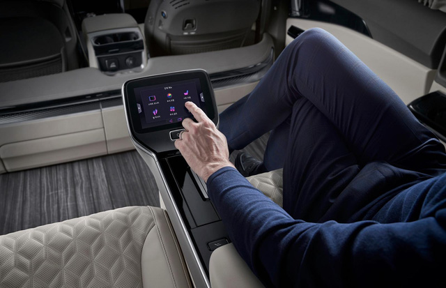 Người dùng có thể điều chỉnh ghế thông minh trên Kia Carnival 4 chỗ bằng màn cảm ứng điều khiển 7 inch đặt giữa 2 ghế sau hoặc thông qua ứng dụng smartphone. Kia cũng đã làm lại hệ thống đèn, điều hòa cho khu vực này, đồng thời bổ sung hệ thống mát xa chân tại vị trí ghế trái, khoang làm mát/hâm nóng đồ uống cho người dùng cũng như một khoang để đồ riêng tại đây.