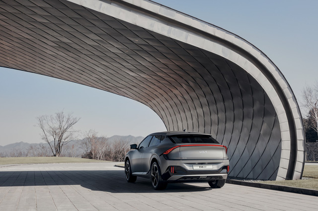 Nếu chỉ quan sát ngoại thất, không một ai sẽ nói EV6 là xe Kia khi ngôn ngữ thiết kế dòng xe điện này một mình một kiểu so với phần còn lại của đội hình Kia toàn cầu, chưa kể xe dù là SUV nhưng lại mang hơi hướm hatchback. Đuôi xe có đôi phần giống Polestar 2 tới từ Volvo trong khi hông xe mang đậm chất Ioniq 5 nhưng dài hơn.
