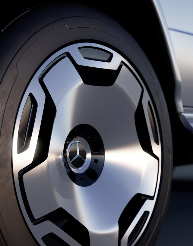 Ngoài ra, concept Mercedes-Benz EQG cũng trang bị dàn đèn LED gắn trần, đèn ngang chạy xuyên suốt hông xen giữa bởi tay nắm tối màu, mâm hợp kim 22 inch độc quyền, cản trước/sau khí động học và hộp chứa đồ đa năng tại vị trí thường đặt lốp dự phòng.