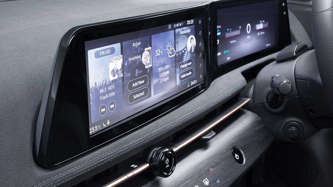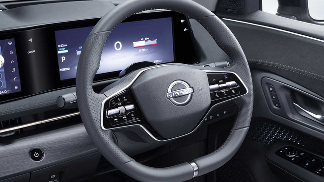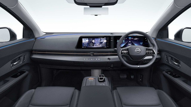 Cabin Ariya có độc một cấu hình ghế ngồi duy nhất là 2 hàng 5 chỗ. Táp lô xe trang bị 2 màn 12,3 inch cỡ lớn hỗ trợ Apple CarPlay/Android Auto không dây và các tính năng ấn tượng từ các bên thứ 3 như trợ lý ảo Amazon Alexa, bên cạnh đó là khả năng nâng cấp từ xa qua kết nối Internet đầu tiên trong lịch sử Nissan.