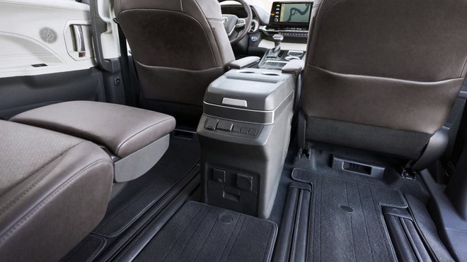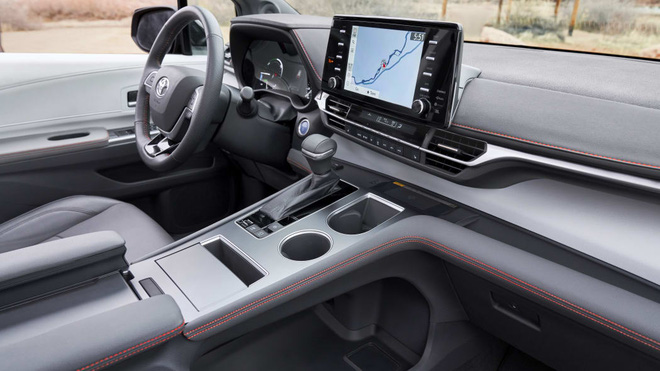 Thiết kế nội thất Sienna mới cũng thay đổi hoàn toàn. Đây là thiết kế quen thuộc trên những mẫu SUV mới nhất của Toyota. Vô-lăng 3 chấu vuông vức. Màn hình giải trí trung tâm 9 inch đặt nổi, hỗ trợ Apple CarPlay và Android Auto. Thế hệ mới có nâng cấp hàng ghế thứ 2 với 2 tuỳ chọn 2 hoặc 3 chỗ ngồi. Khoảng để chân của các hàng ghế rộng rãi hơn trước.