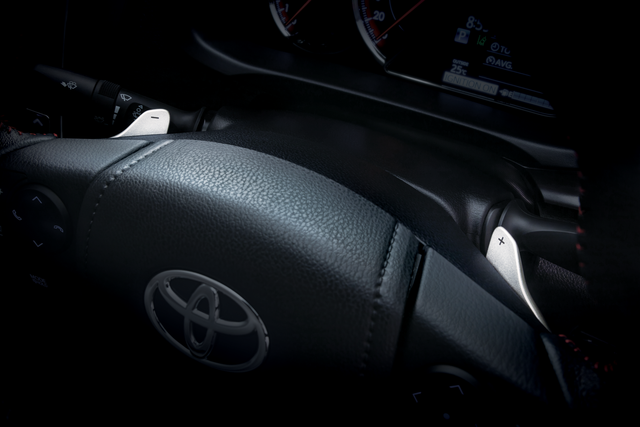 Nội thất xe cũng có sự chuyển mình rõ rệt với các chi tiết như ghế thể thao bọc da xen lẫn da lộn khâu chỉ đỏ, vô-lăng thể thao/đầu cần gạt số bọc da khâu chỉ đỏ, logo GR trên tựa đầu ghế trước, nút khởi động và thảm trải sản, đồng hồ Optitron với kim chỉ đỏ thay thế tông xanh – trắng của bản tiêu chuẩn.