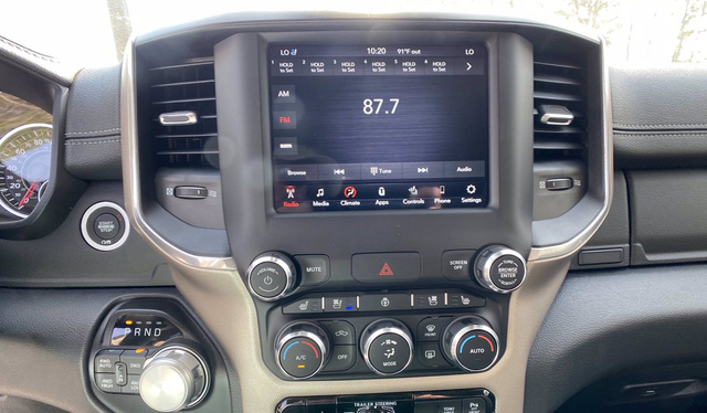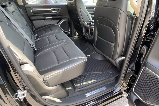 Hiện chưa rõ trang bị cụ thể bên trong của phiên bản Laramie chính hãng tại Việt Nam. Theo thông tin trên trang web JVA, mẫu Ram 1500 có khoang cabin hiện đại không kém những SUV đắt tiền. Nổi bật nhất là màn hình trung tâm kích thước dạng tablet đặt dọc kích thước 12 inch. Bên cạnh là cần số dạng núm xoay, kết hợp các chế độ cài cầu. Âm thanh Harman Kardon 9 loa. Ghế chỉnh điện có tích hợp sưởi. Cửa sổ trời dạng toàn cảnh - trang bị chỉ có trên các dòng bán tải có kích thước lớn. Đáng tiếc là mẫu xe này vẫn dùng đồng hồ analog chứ chưa phải loại màn hình lớn như trên đối thủ F-150.
