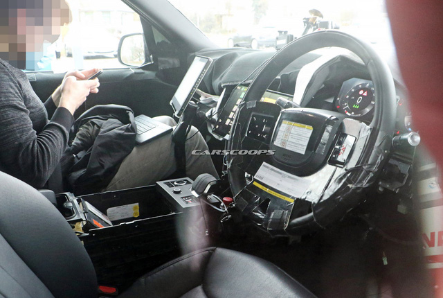 Dù vậy, phiên bản thử nghiệm được phát hiện tại châu Âu này vẫn sử dụng khá nhiều chi tiết tạm bợ nên chỉ có thể giúp ta rút ra được một vài kết luận nho nhỏ. Đầu tiên, vô lăng bọc da trên Range Rover mới khá giống trang bị xuất hiện trên Range Rover Velar 2021, đằng sau là bảng đồng hồ kỹ thuật số 12,3 inch.