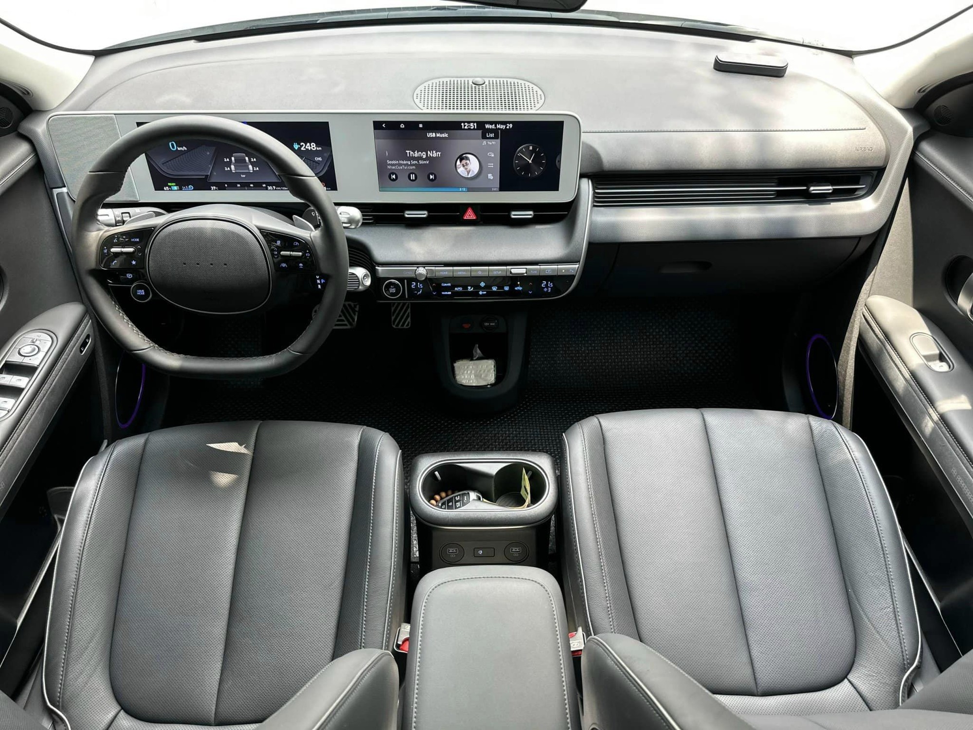 Bên trong nội thất, chiếc Hyundai Ioniq 5 rao bán sử dụng ghế da màu đen chủ đạo. Do mới chỉ lăn bánh 8.000 km, không bất ngờ khi chất lượng da ghế còn tốt và giữ được độ căng.
