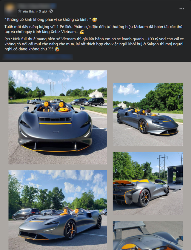 Trong thời gian gần đây, giới mê xe trong nước không khỏi ngạc nhiên khi liên tục có siêu xe lên đường về nước. Cách đây ít hôm là những cái tên như McLaren Senna, Porsche 911 GT3,... Hôm nay, một doanh nghiệp nhập khẩu tại Sài Gòn tiếp tục chia sẻ rằng siêu xe McLaren Elva sẽ lên đường về Việt Nam.