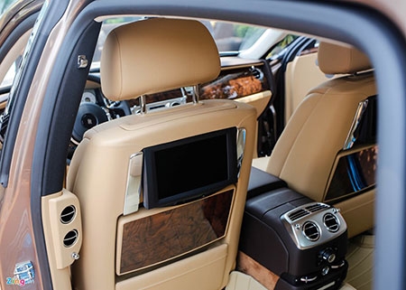 | Hai màn hình giải trí phía sau giúp hành khách thư giãn trên những hành trình dài. Ngoài ra bàn làm việc bằng gỗ quý có thể mở ra, gập vào để phục vụ công biệc trong khi di chuyển. |