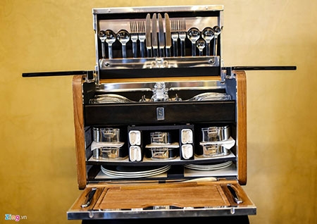 | Rolls-Royce cũng giới thiệu thêm bộ dụng cụ ăn đặt bên trong cốp xe. Bộ đồ ăn này sẽ phù hợp với những người thích đi du lịch hoặc cắm trại. |