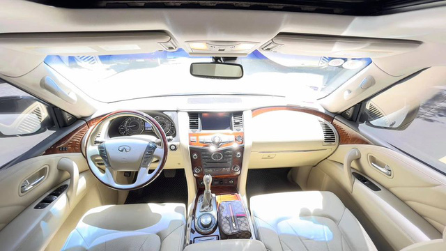 Sau 5 năm, nội thất của chiếc Infiniti QX80 2015 vẫn cho cái nhìn tốt về mặt thẩm mỹ cũng như chất lượng. Những chi tiết bọc da không có dấu hiệu sờn, rách hay ố bẩn.