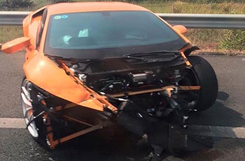 Chiếc Lamborghini Huracan đã quay ngang trên đường cao tốc và móp phần đầu, đuôi xe quay vào phía trong rào chắn. Lamborghini Huracan đang có giá bán chính hãng là 13,5 tỷ đồng.