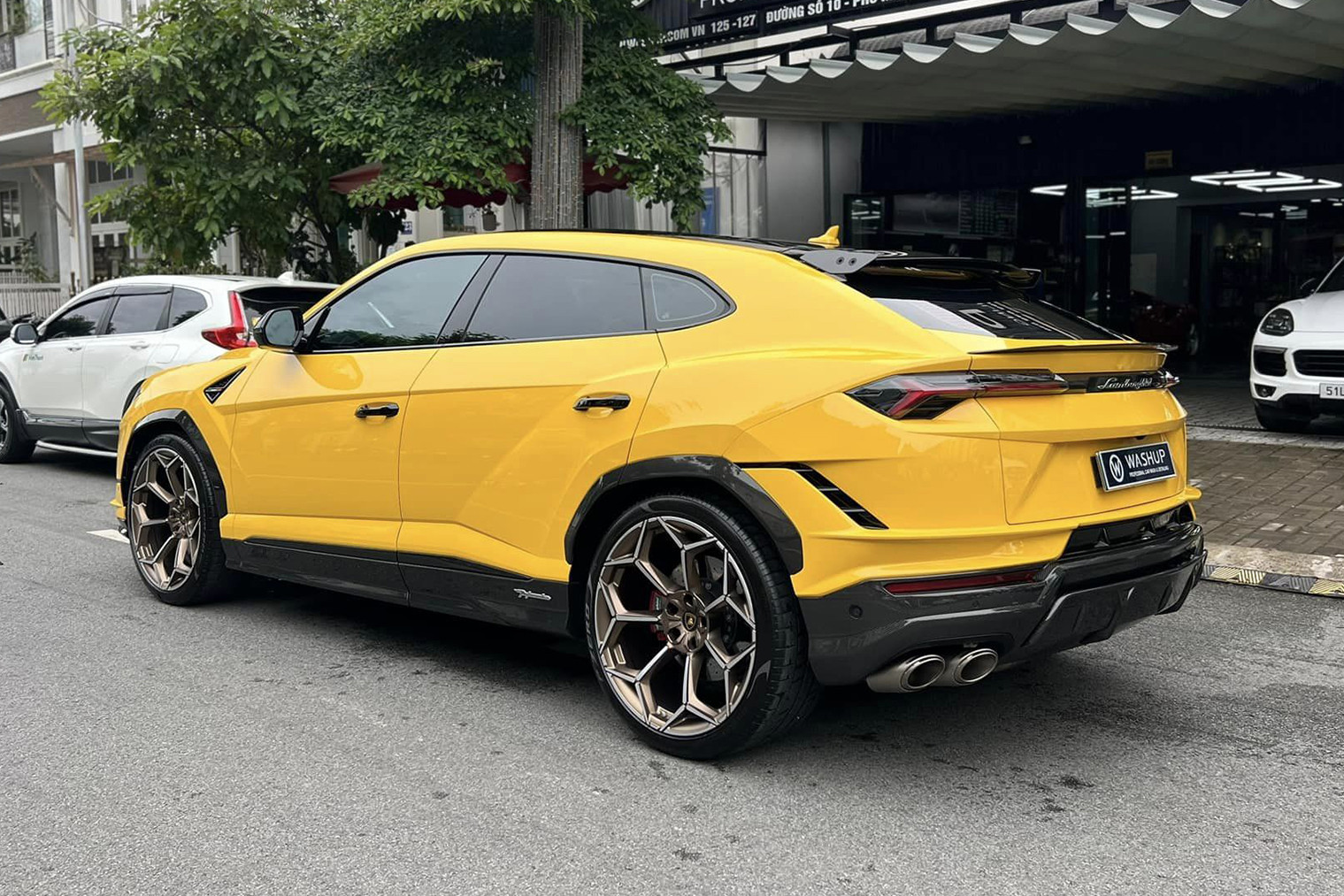 Chiếc Lamborghini Urus Performante từng của đại gia Đoàn Di Băng đặc biệt hơn khi mua thêm loạt tùy chọn có giá lên tới gần 2 tỷ đồng. Do mới sử dụng trong thời gian ngắn và được chăm sóc cẩn thận, ngoại thất xe về cơ bản đều còn rất mới, từ nước sơn màu vàng nổi bật tới các chi tiết ốp sợi carbon.