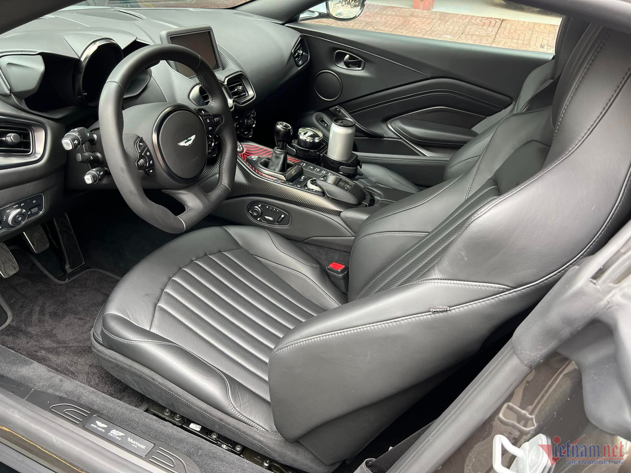 Nội thất của chiếc xe được trang bị da cao cấp màu đen Obsidian Black. Tương tự những chiếc xe khác của ông Đặng Lê Nguyên Vũ, chiếc Vantage 007 Edition được trang bị giá để cốc cà phê quen thuộc. Đặc biệt hơn, odo của chiếc xe vừa chỉ dừng ở con số 67 km. Logo của phiên bản “007 Edition” có thể được tìm thấy ở khu vực bệ tay trung tâm, cần số, tựa đầu và bệ bước.